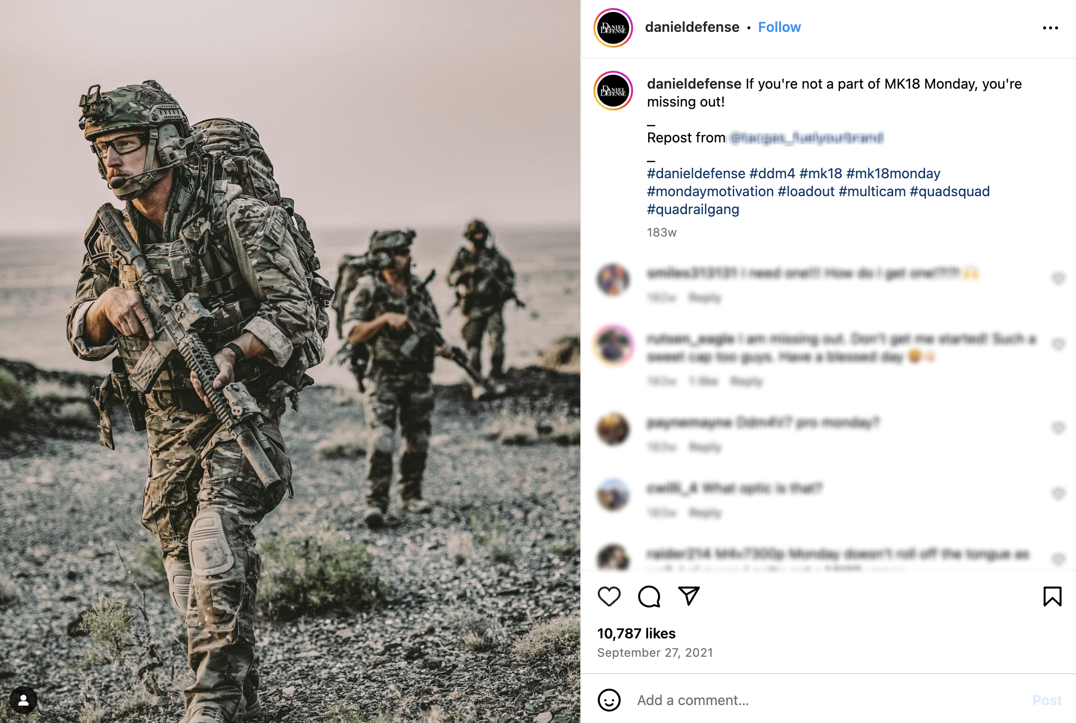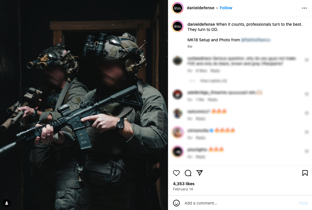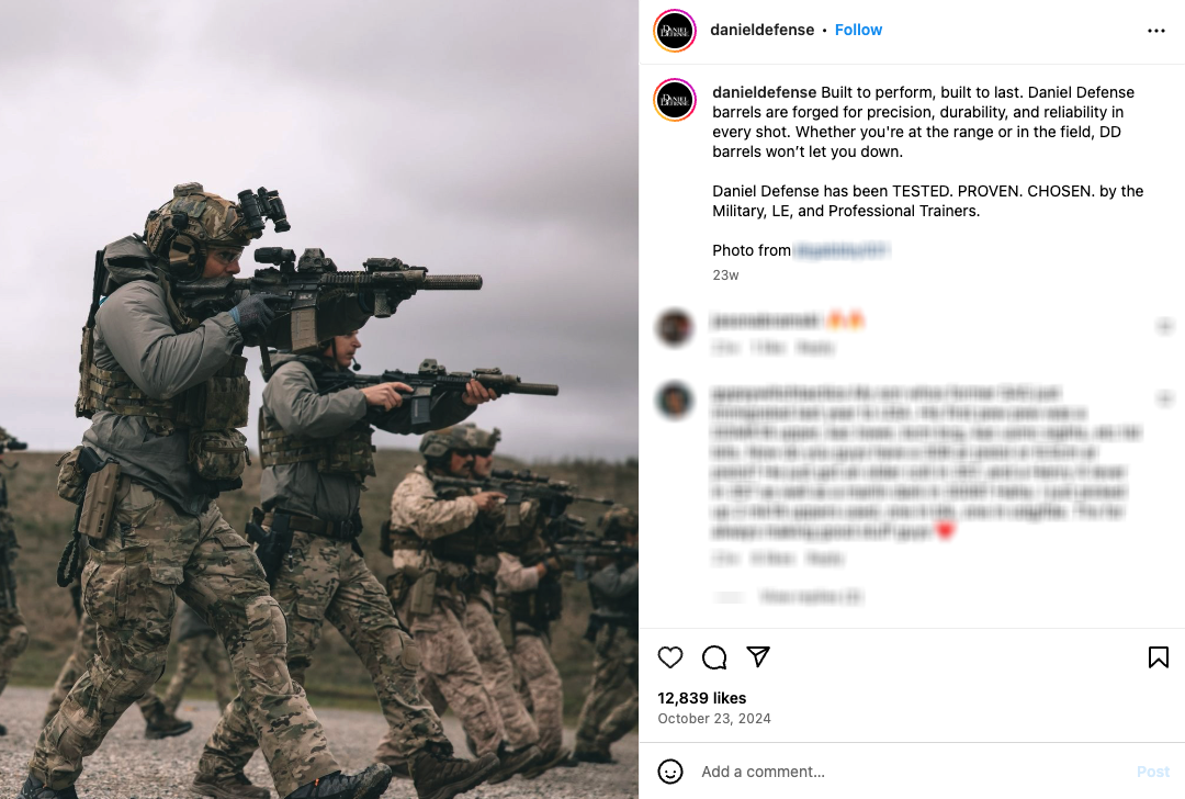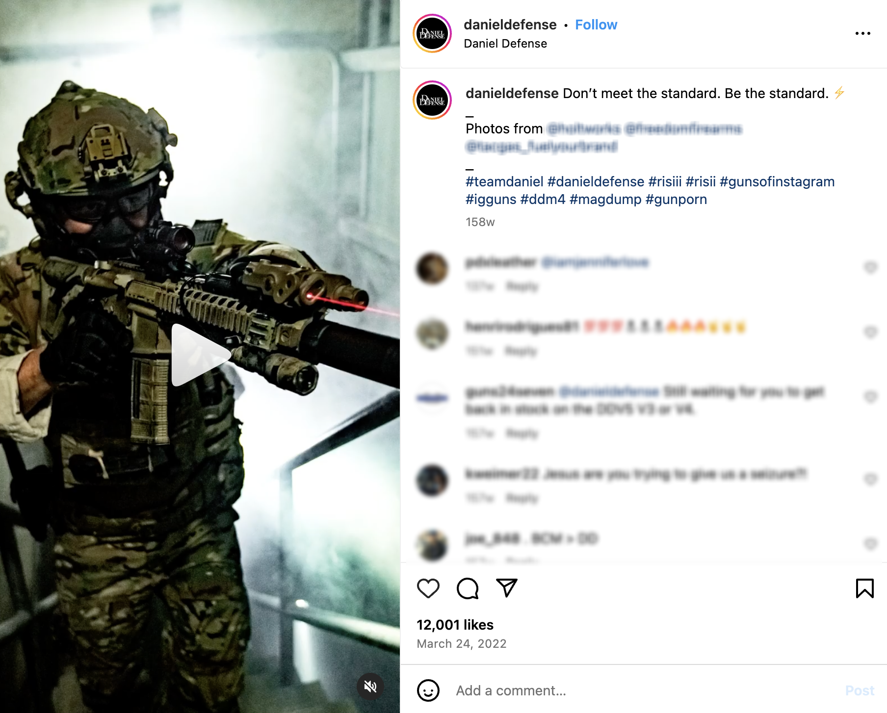 Daniel Defense’s practices are not unique in the gun industry. Gun manufacturers commonly leverage taxpayer-funded DoD contracts to produce and market military-grade weapons to civilians.