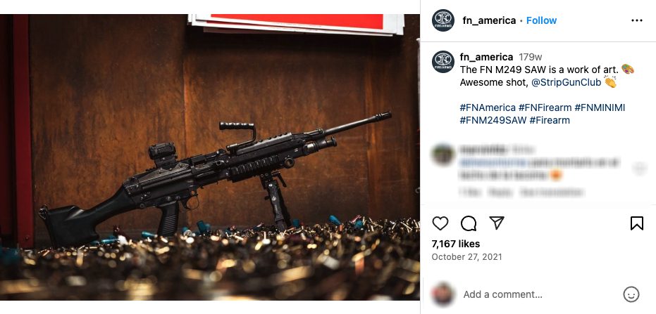 The series also includes semi-automatic versions of the belt-fed M249 SAW machine gun. Why would such a gun have a place on the commercial market? Why would gun owners want them? The National Rifle Association provided a short answer on the cover of its July 2016 issue of Shooting Illustrated: “Because.” The corresponding NRA review said the semi-automatic “M249S is as close to a SAW as the overwhelming majority of us can own. It is a piece of historic militaria” that “you and your family can enjoy shooting to your heart’s content. Just be sure to budget for a whole lot of ammo.”22Gary Paul Johnston, “FN America M249S Rifle,” Shooting Illustrated, June 28, 2016, https://www.shootingillustrated.com/content/fn-america-m249s-rifle/.