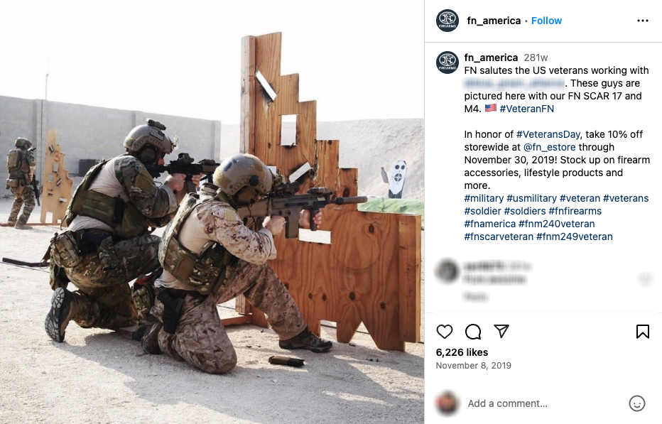 FN even describes rifles that it sells outside of the Military Collector series — like the FN 15 Guardian, another AR-15 — as having the same “battle-proven blueprint” as their military counterparts. But once again, these military-inspired rifles have led to bloodshed in peaceful communities. For example, three FN 15 rifles were recovered from the Las Vegas mass shooter’s hotel rooms, and two were equipped with bump stocks.