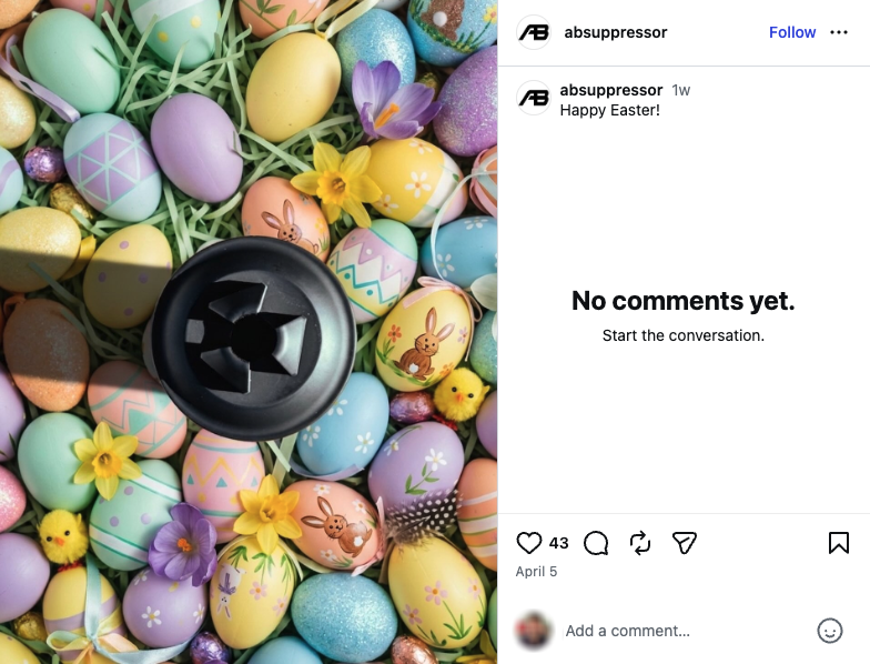 Another silencer manufacturer, Banish Suppressors, posted an image of black Easter eggs styled like the company’s products. Other examples are shown below.