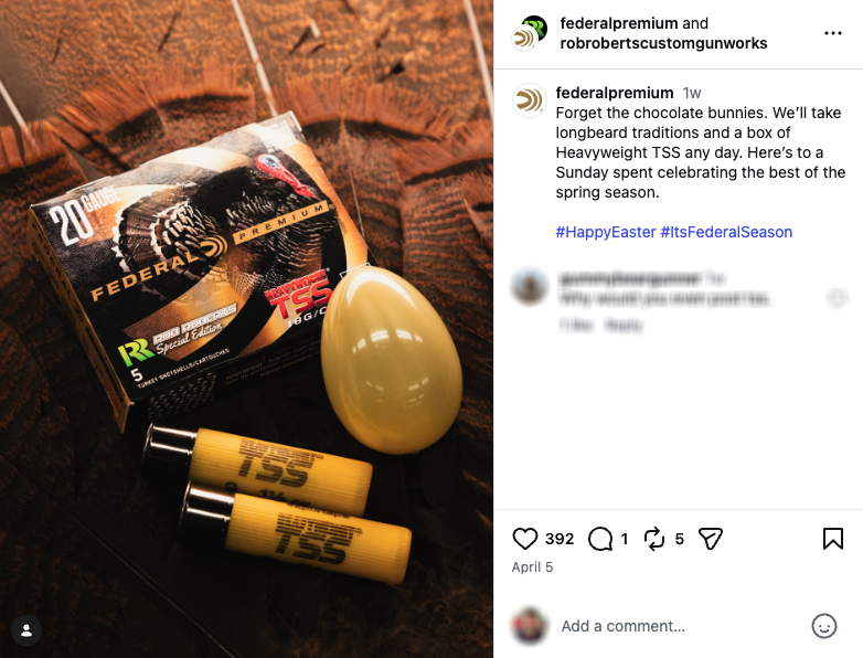 Several gun companies leaned heavily into one of the most recognizable symbols of the holiday: the Easter basket. In one post, Remington showed a truck-shaped basket filled with shotgun ammunition instead of candy and toys, which the company called “the ultimate find.”